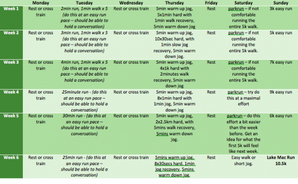 Your 6 week training program for the 10.5km event